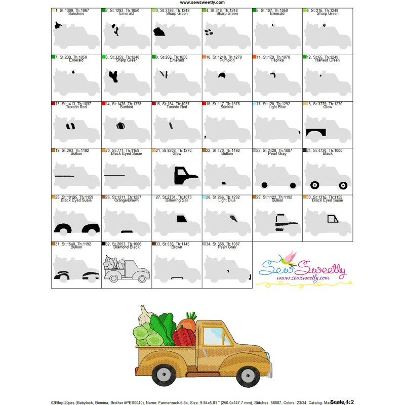 Farmer Truck-6 Embroidery Design Pattern-1