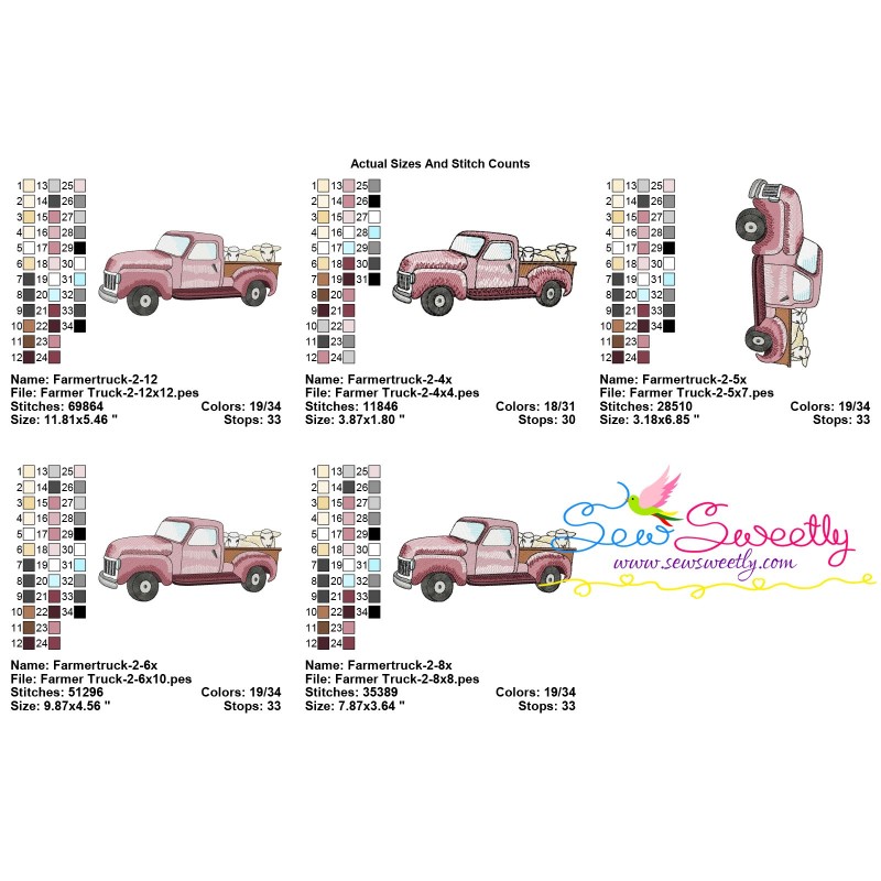 Farmer Truck-2 Machine Embroidery Design Pattern For Farming Embroidery Projects.