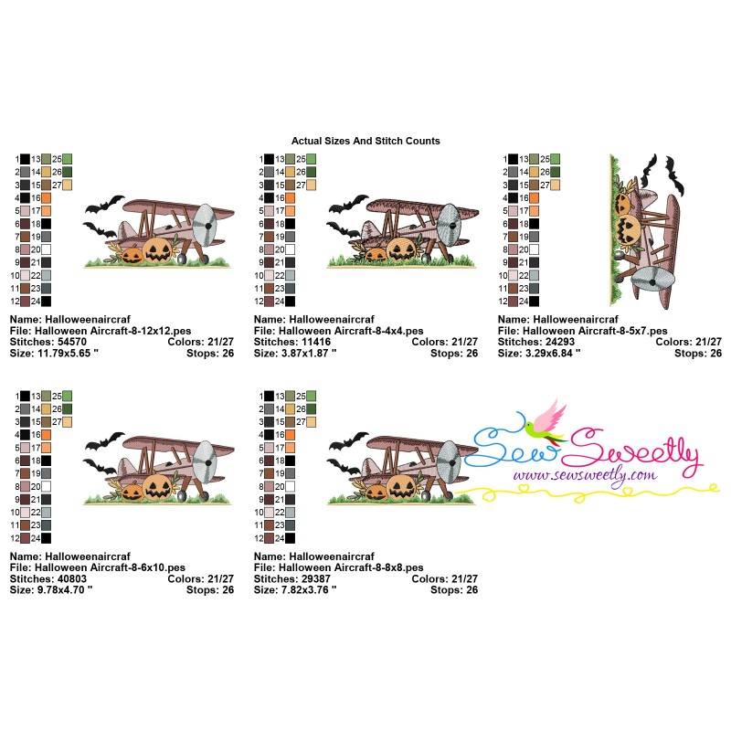 Halloween Aircraft-8 Machine Embroidery Design Pattern For Halloween Embroidery Projects.