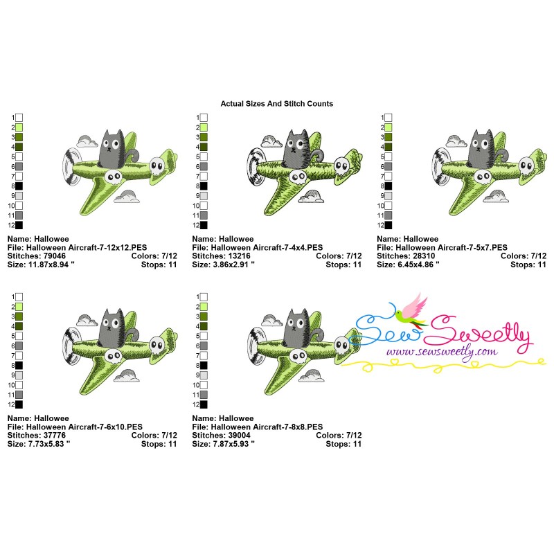 Halloween Aircraft-7 Machine Embroidery Design Pattern For Halloween Embroidery Projects.