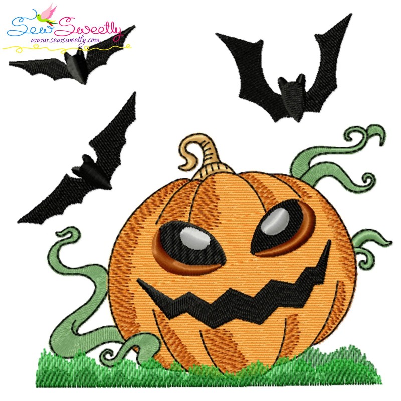 Halloween Pumpkin And Bats Embroidery Design Pattern-1