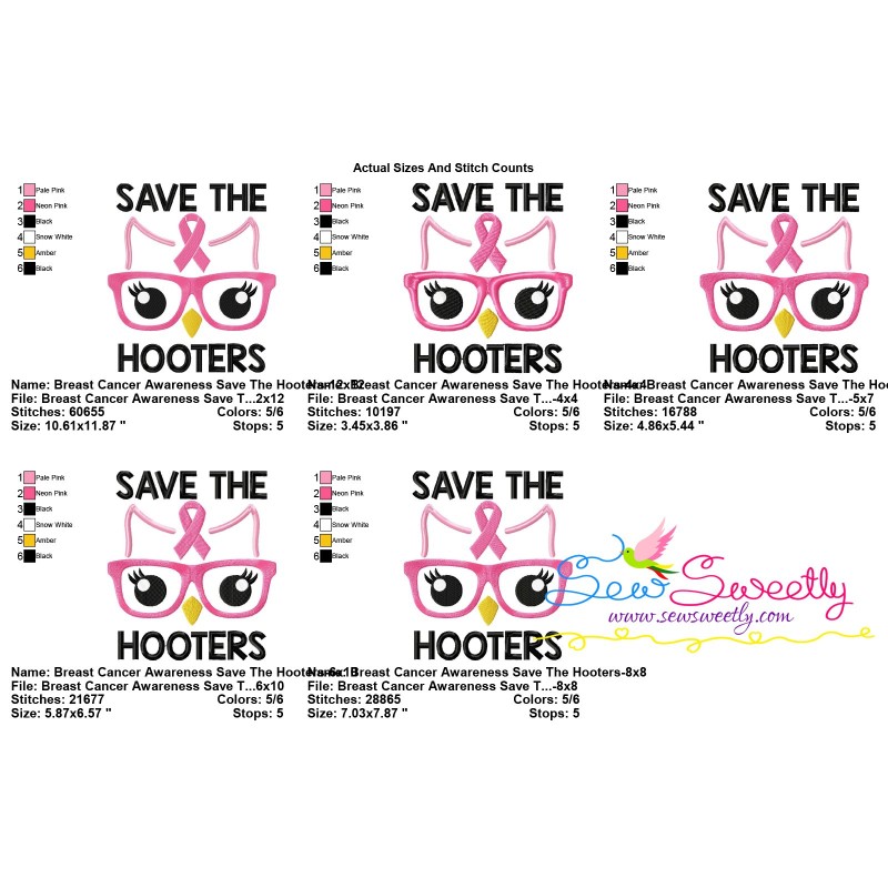 Save The Hooters Machine Embroidery Design Pattern For Breast Cancer Awareness Embroidery Projects.