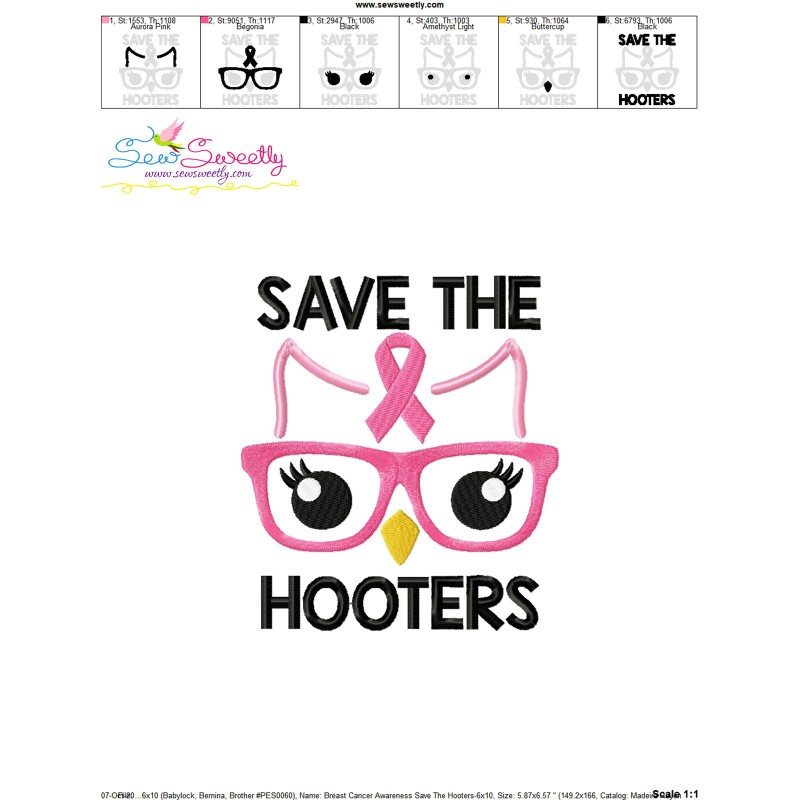 Save The Hooters Breast Cancer Awareness Embroidery Design Pattern-1