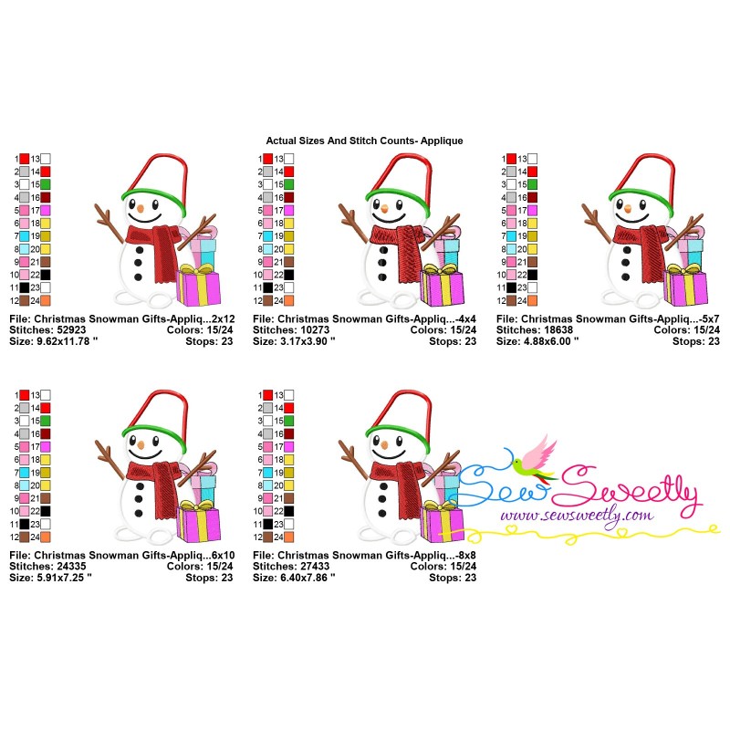 Christmas Snowman With Gifts Applique Embroidery Design Pattern For Christmas Embroidery Projects.
