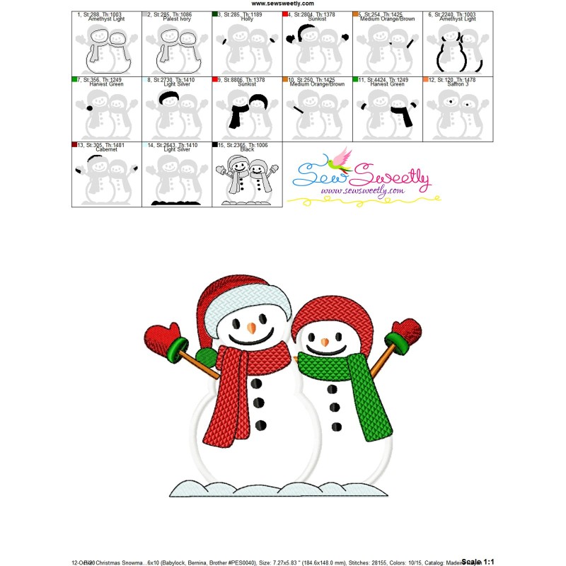 Christmas Snowman Couple Applique Embroidery Design Pattern For Christmas Embroidery Projects.