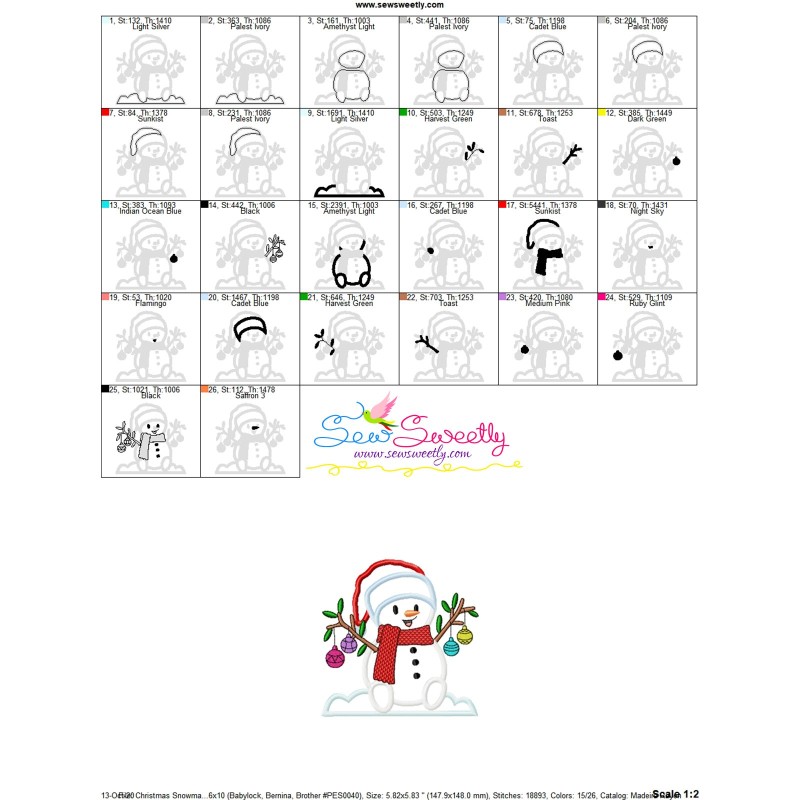 Christmas Snowman Ornaments Applique Embroidery Design Pattern For Christmas Embroidery Projects.