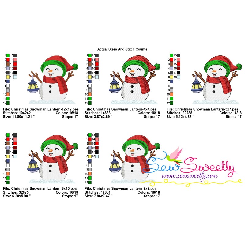 Christmas Snowman Lantern Embroidery Design Pattern