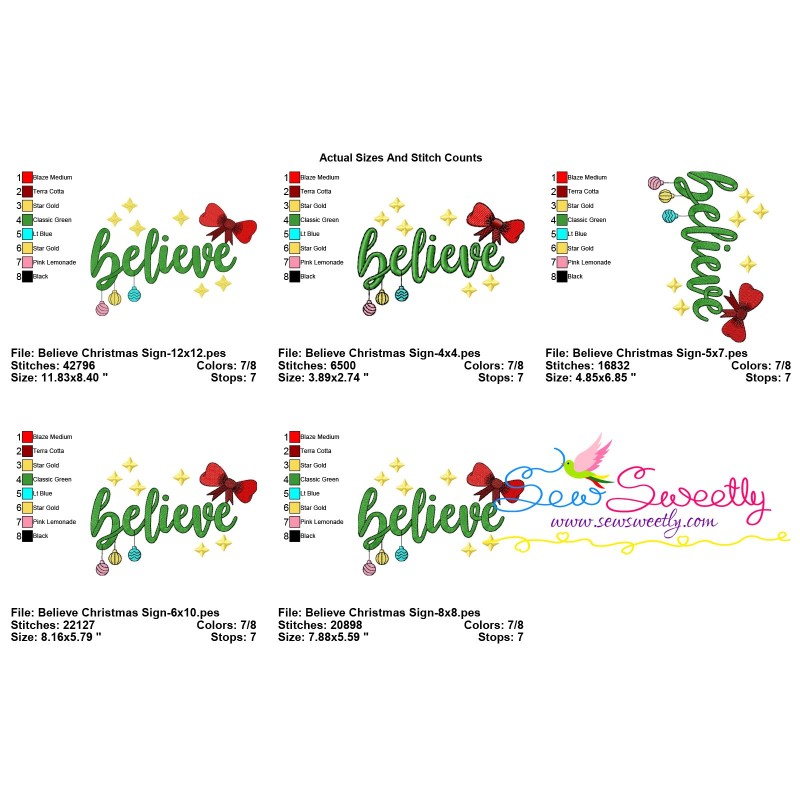 Believe Christmas Lettering Machine Embroidery Design Pattern For Christmas Embroidery Projects.