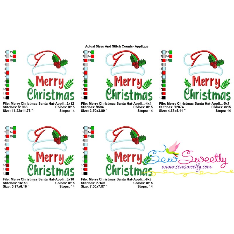 Merry Christmas Santa Hat Lettering Applique Embroidery Design Pattern For Christmas Embroidery Projects.