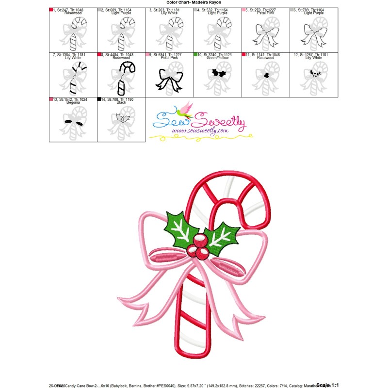 Candy Cane Bow-2 Applique Design Pattern-1