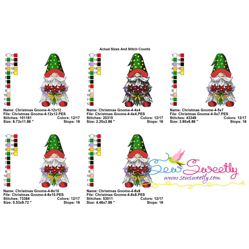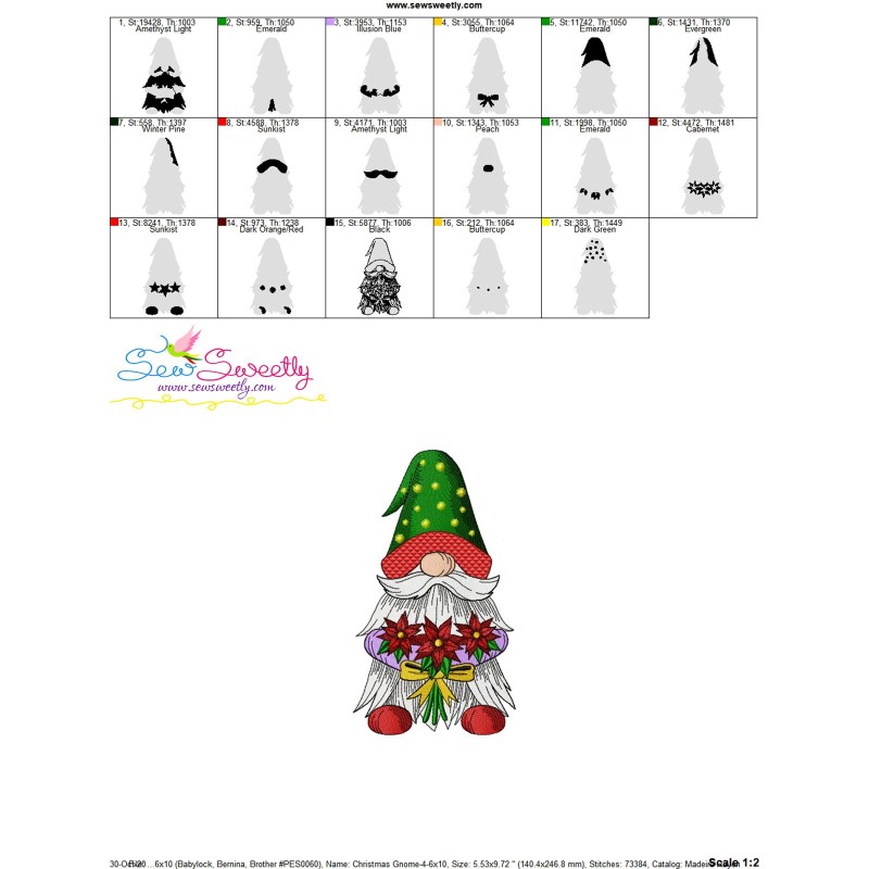 Christmas Gnome With Flowers Machine Embroidery Design Pattern For Christmas Embroidery Projects.