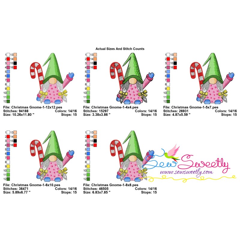 Christmas Gnome With Candy Cane-2 Machine Embroidery Design Pattern For Christmas Embroidery Projects.
