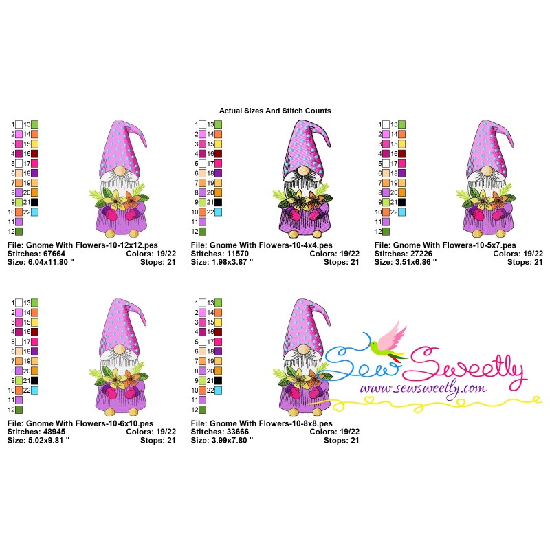 Gnome With Flowers-10 Machine Embroidery Design Pattern.