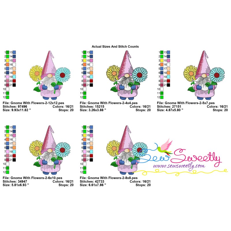 Gnome With Flowers-2 Embroidery Design Pattern-3