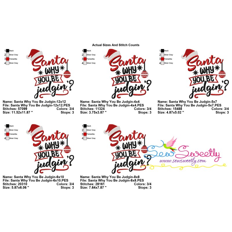 Santa Why You Be Judgin Christmas Lettering Embroidery Design Pattern-2