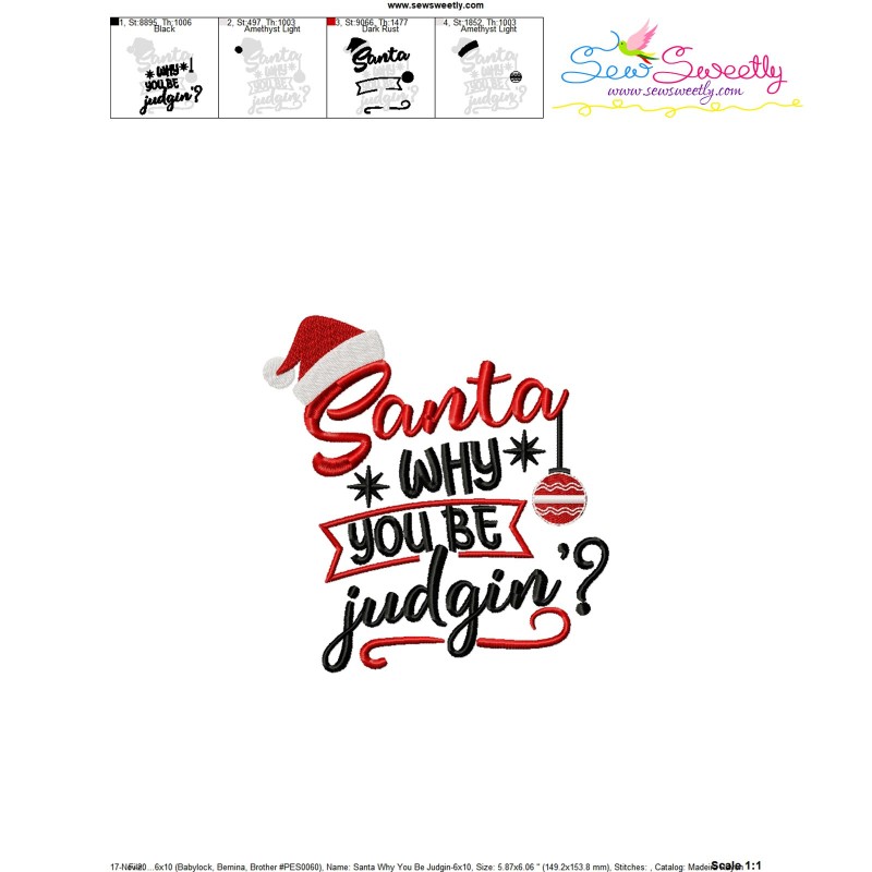 Santa Why You Be Judgin Christmas Lettering Embroidery Design Pattern-1