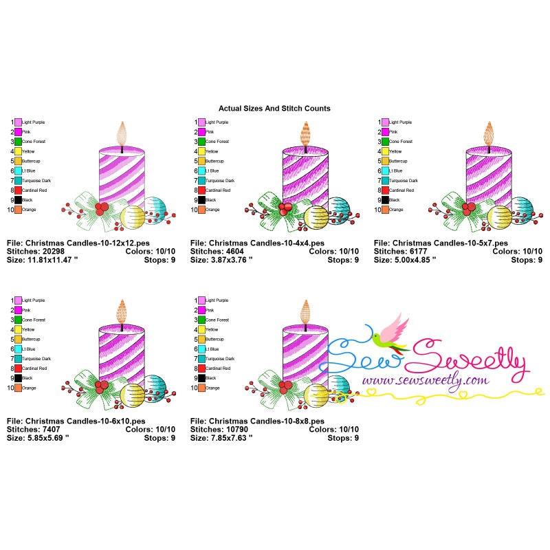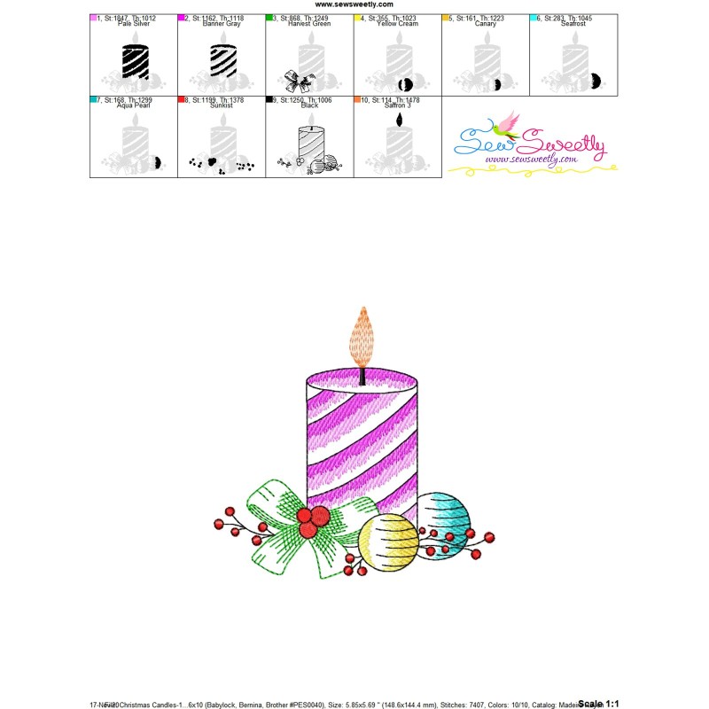 Christmas Candle-10 Light Fill Machine Embroidery Design Pattern For Christmas Embroidery Projects.
