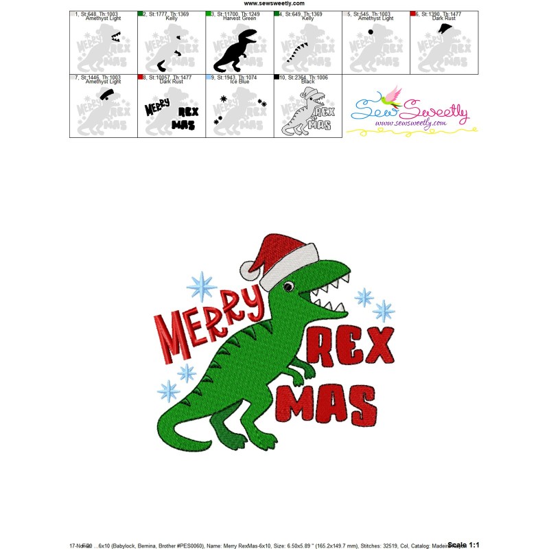 Merry RexMas Dinosaur Christmas Lettering Embroidery Design Pattern-1
