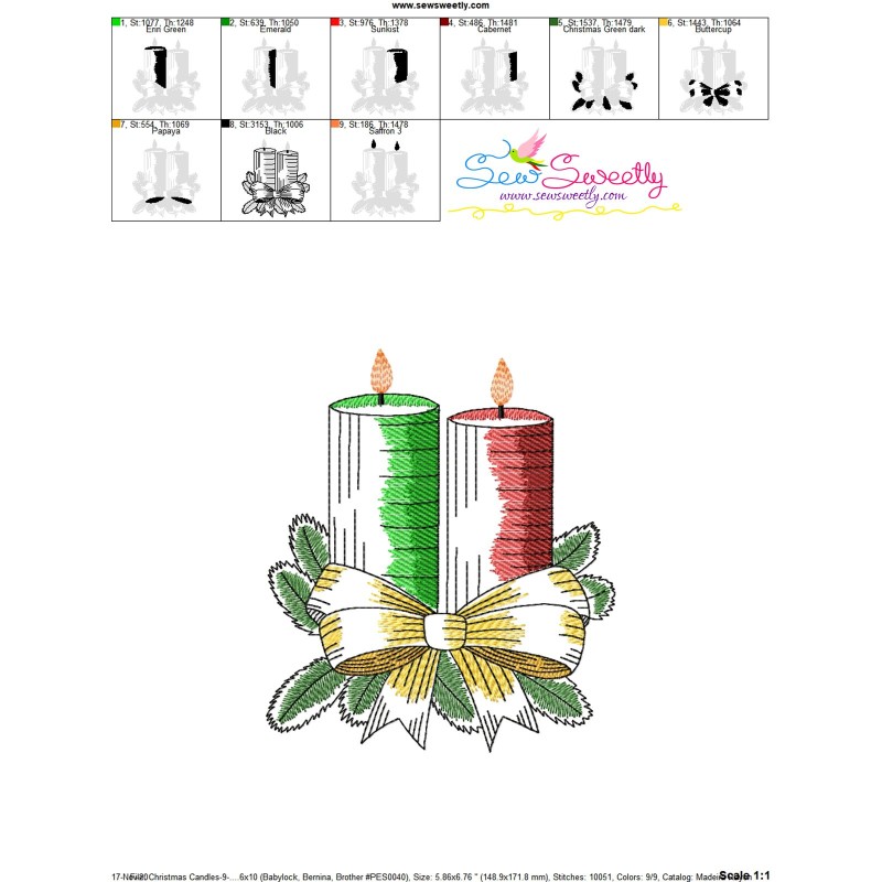 Christmas Candles-9 Light Fill Machine Embroidery Design Pattern For Christmas Embroidery Projects.