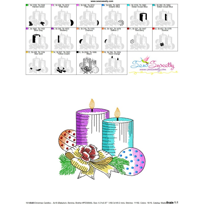 Christmas Candles-7 Light Fill Machine Embroidery Design Pattern For Christmas Embroidery Projects.