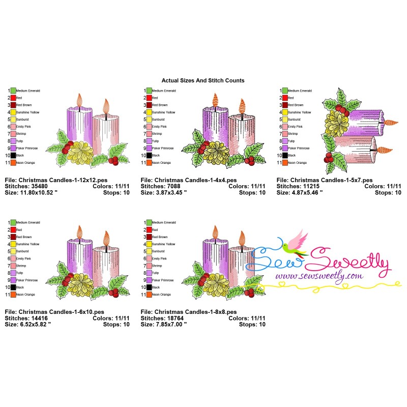 Christmas Candles-1 Light Fill Machine Embroidery Design Pattern For Christmas Embroidery Projects.