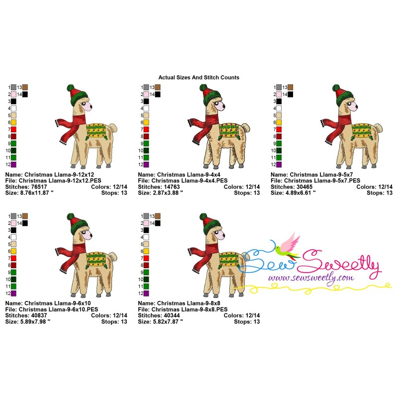 Christmas Llama-7 Machine Embroidery Design Pattern For Christmas Embroidery Projects.