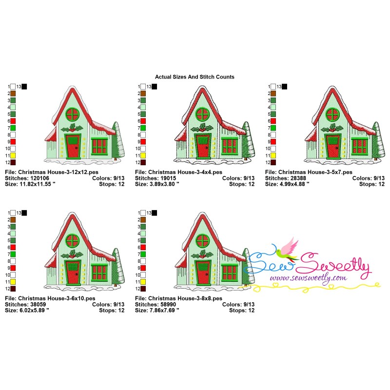 Christmas House-3 Machine Embroidery Design Pattern For Christmas Embroidery Projects.
