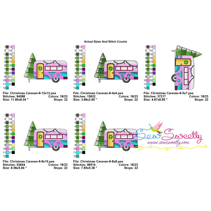 Christmas Caravan-6 Machine Embroidery Design Pattern For Christmas Embroidery Projects.