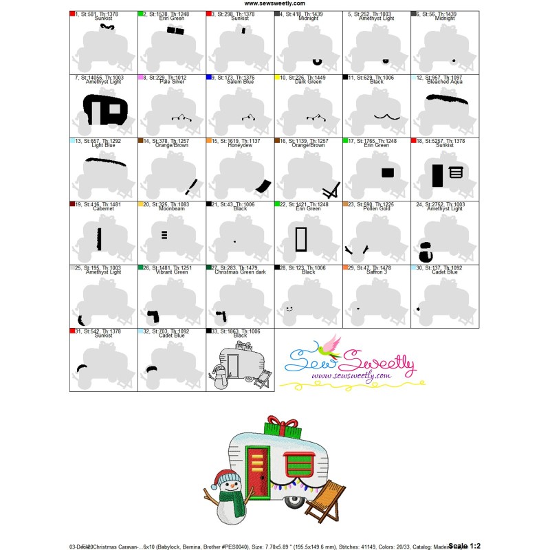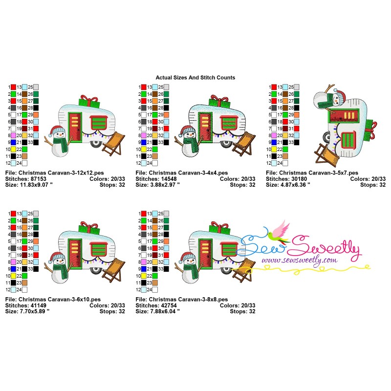 Christmas Caravan-3 Machine Embroidery Design Pattern For Christmas Embroidery Projects.