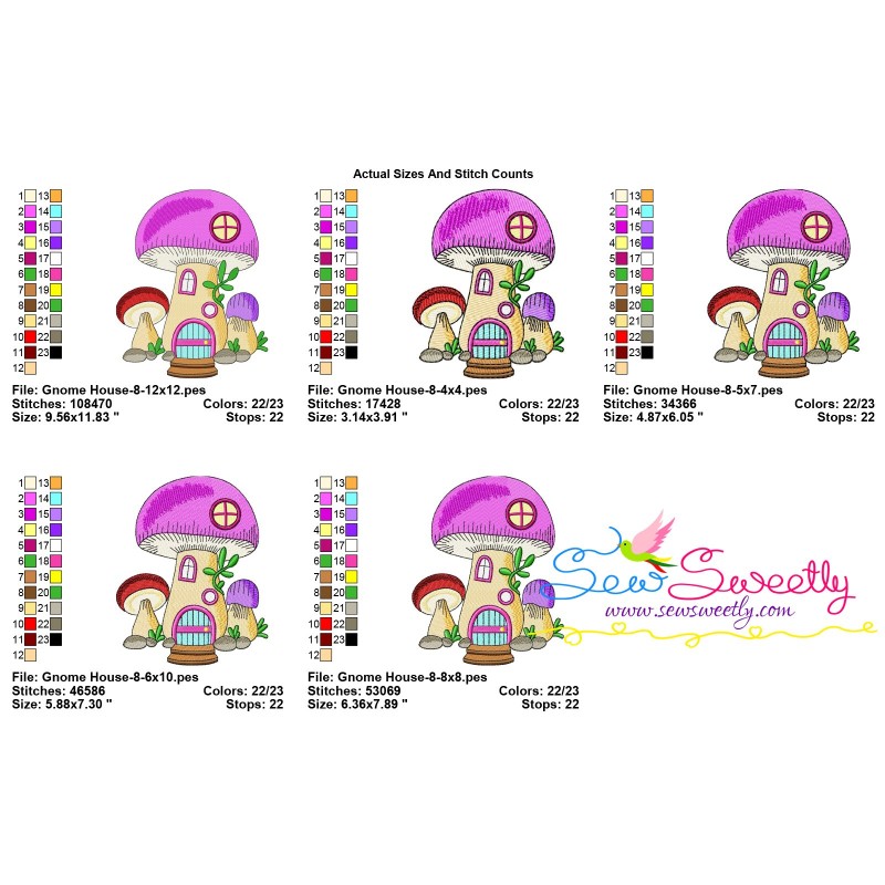 Gnome Mushroom House-8 Exclusive Machine Embroidery Design Pattern.