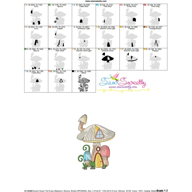 Gnome Mushroom House-7 Exclusive Machine Embroidery Design Pattern.