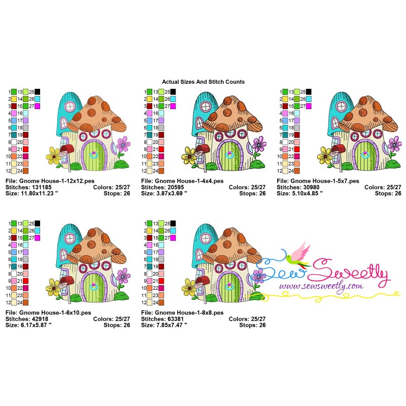Gnome Mushroom House-1 Embroidery Design Pattern-1