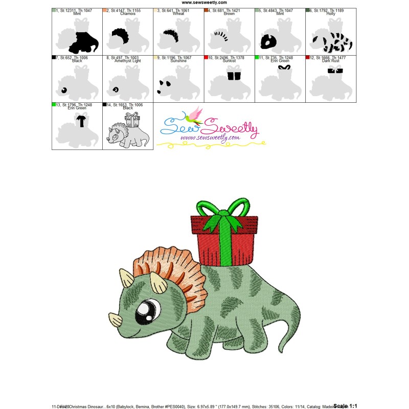 Christmas Dinosaur-5 Embroidery Design Pattern-1
