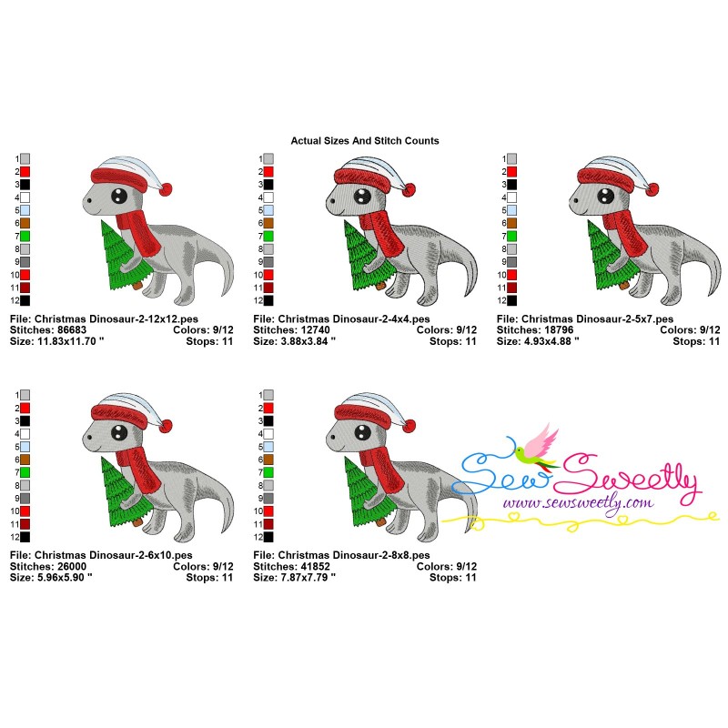 Christmas Dinosaur-2 Embroidery Design Pattern-1