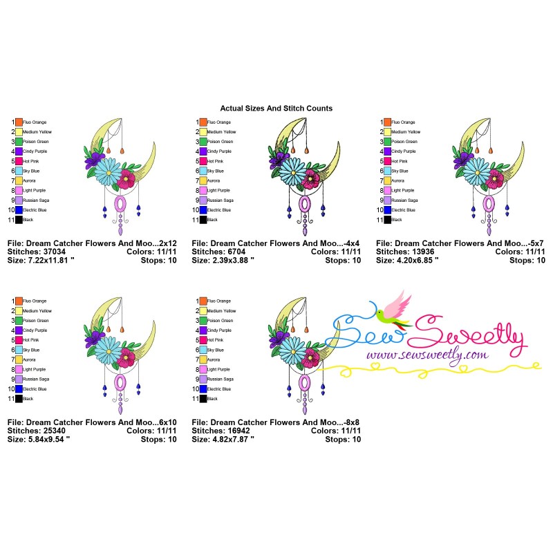 Dream Catcher Flowers And Moon-8 Machine Embroidery Design Pattern.