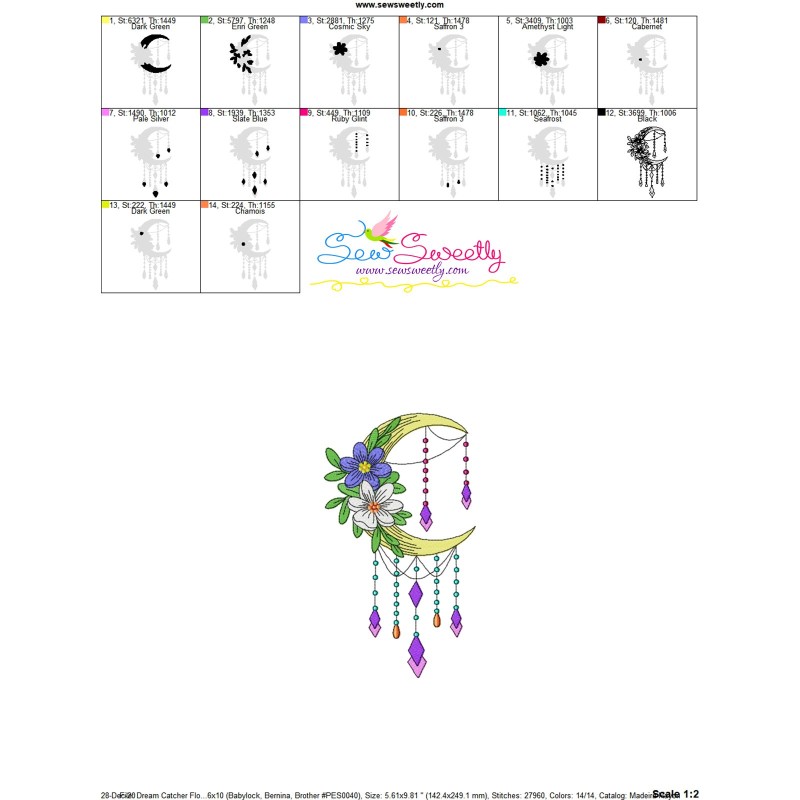 Dream Catcher Flowers And Moon-4 Embroidery Design Pattern-2