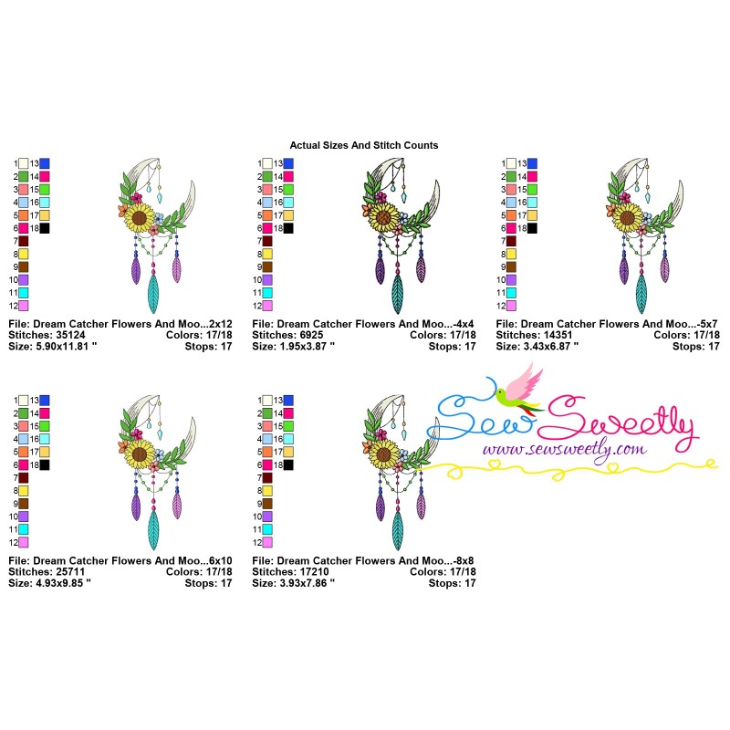 Dream Catcher Flowers And Moon-3 Machine Embroidery Design Pattern.