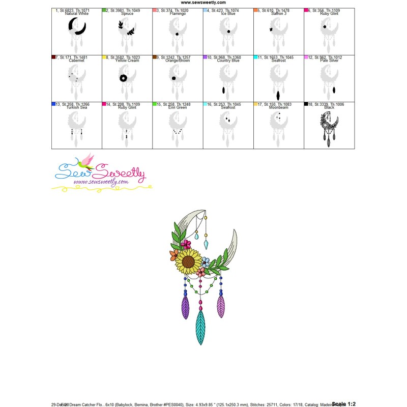 Dream Catcher Flowers And Moon-9 Embroidery Design Pattern-1