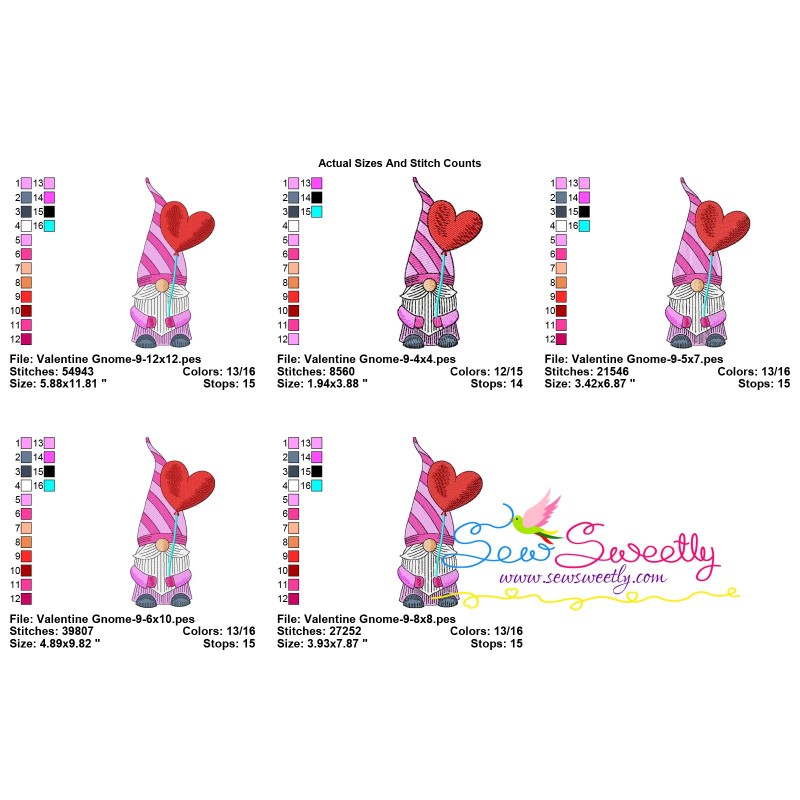 Valentine Gnome-9 Embroidery Design Pattern