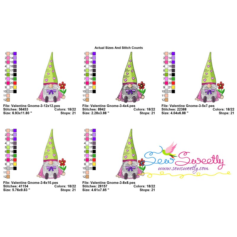 Valentine Gnome-3 Exclusive Machine Embroidery Design Pattern For Valentine's Day Embroidery Projects.