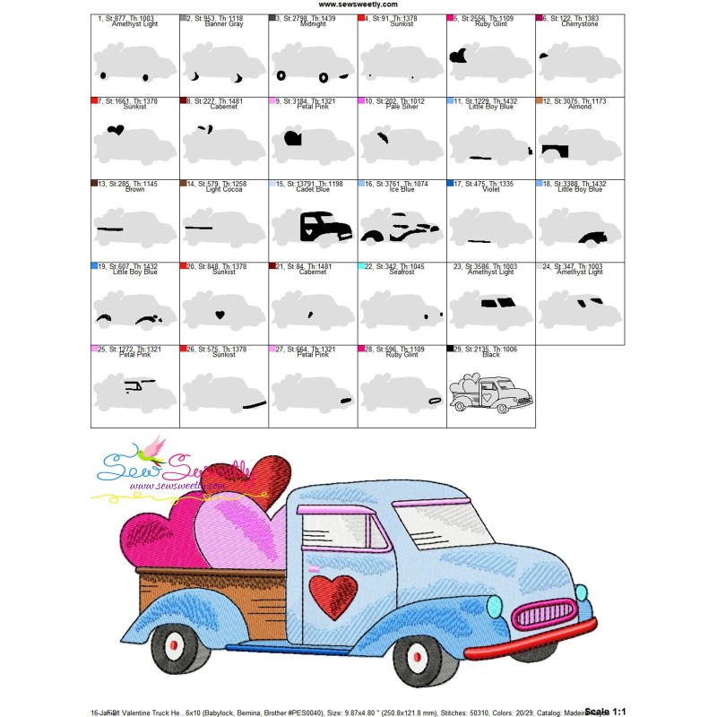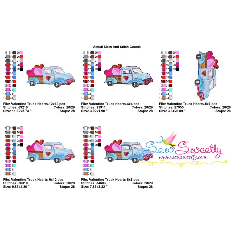 Valentine Truck Hearts Embroidery Design Pattern