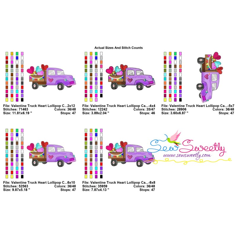 Valentine Truck Heart Lollipop Candy Exclusive Machine Embroidery Design Pattern For Valentine's Day Embroidery Projects.