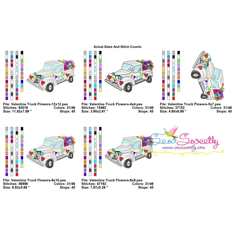 This Embroidery Design Set includes 10 Beautiful Valentine Trucks Machine Embroidery Designs.