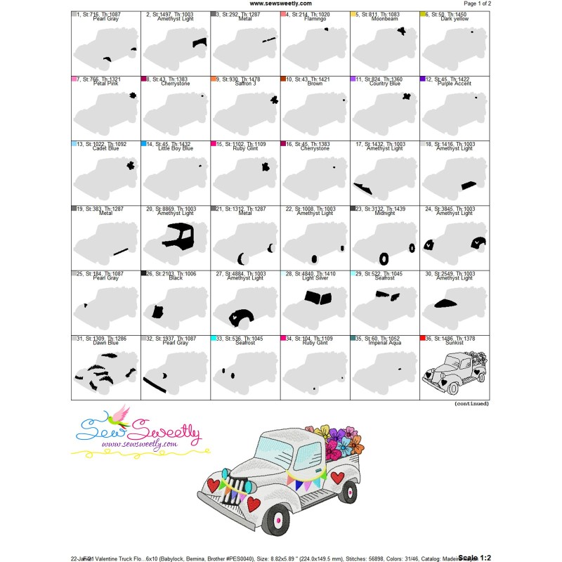 Valentine Truck Flowers Embroidery Design Pattern-2