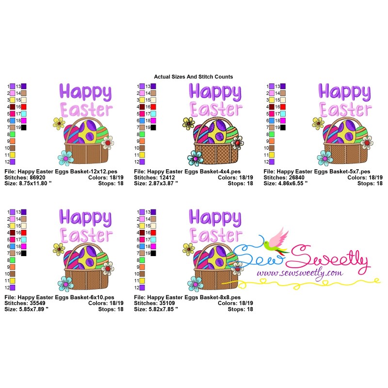 Happy Easter Eggs Basket Embroidery Design Pattern