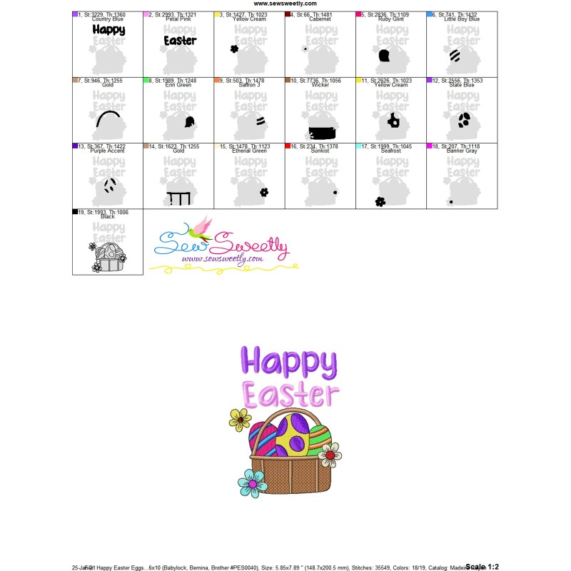 Happy Easter Eggs Basket Embroidery Design Pattern-1