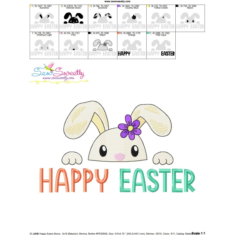 Happy Easter Bunny Peeking Embroidery Design Pattern-1