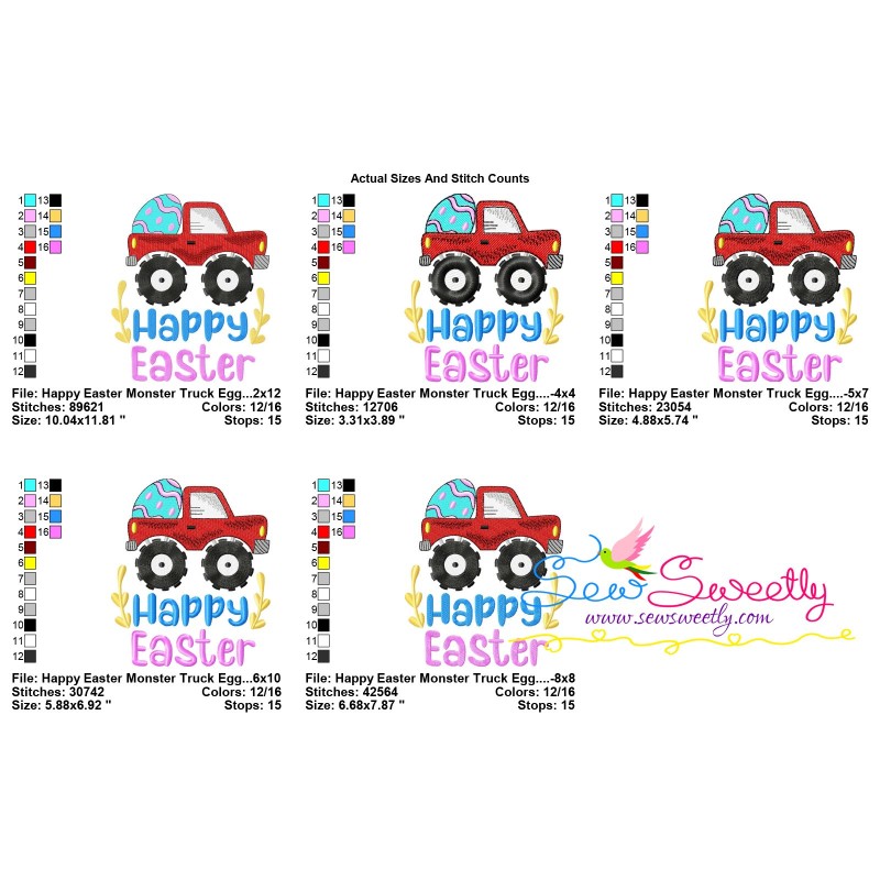 Happy Easter Monster Truck With Egg Exclusive Machine Embroidery Design Pattern For Easter Embroidery Projects.