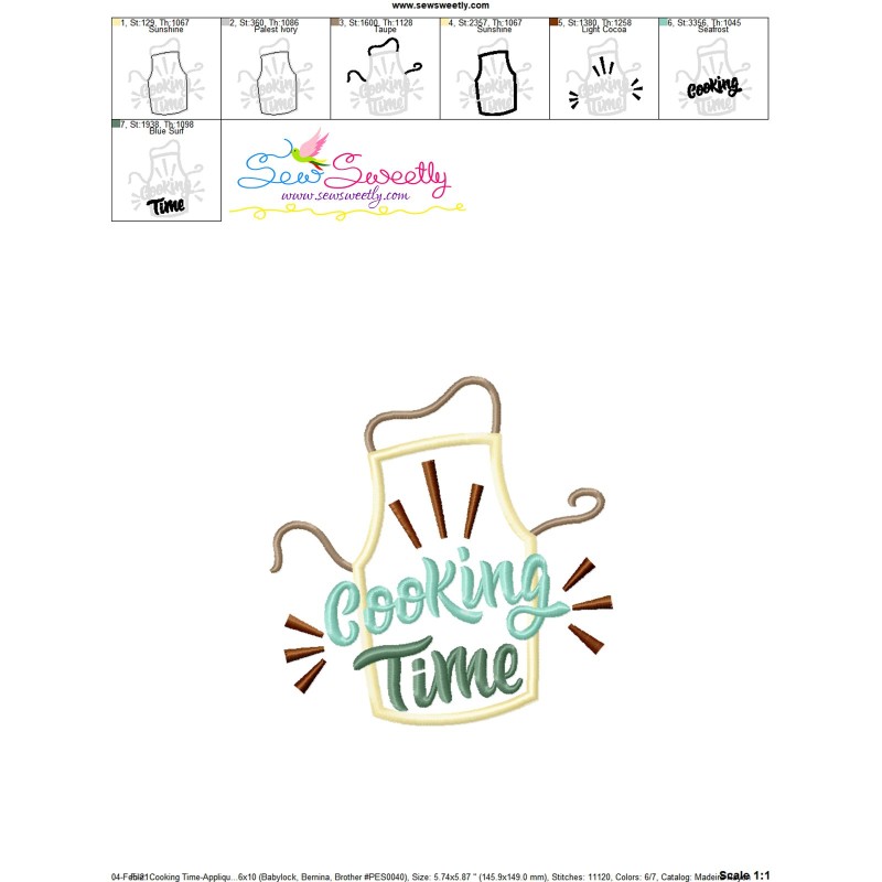 Cooking Time Kitchen Lettering Exclusive Applique Embroidery Design Pattern For Kitchen Embroidery Projects.