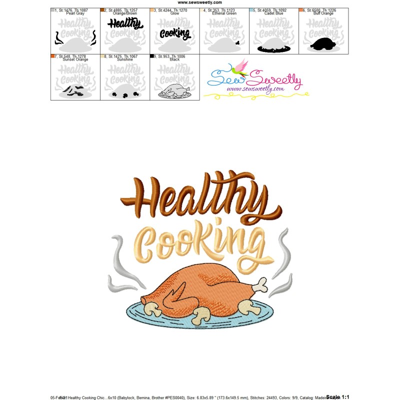 Healthy Cooking Chicken Kitchen Lettering Exclusive Machine Embroidery Design Pattern For Kitchen Embroidery Projects.
